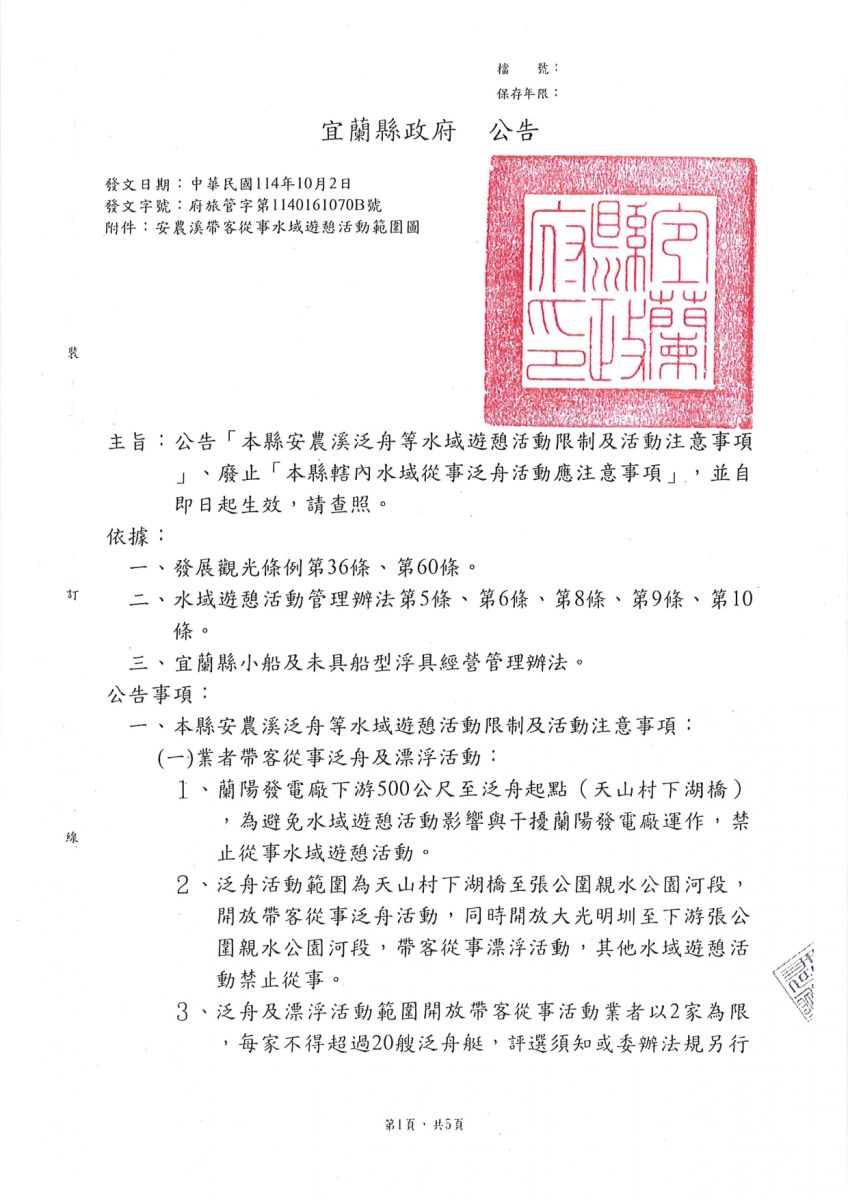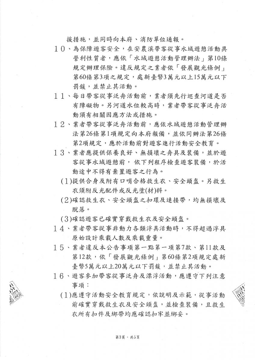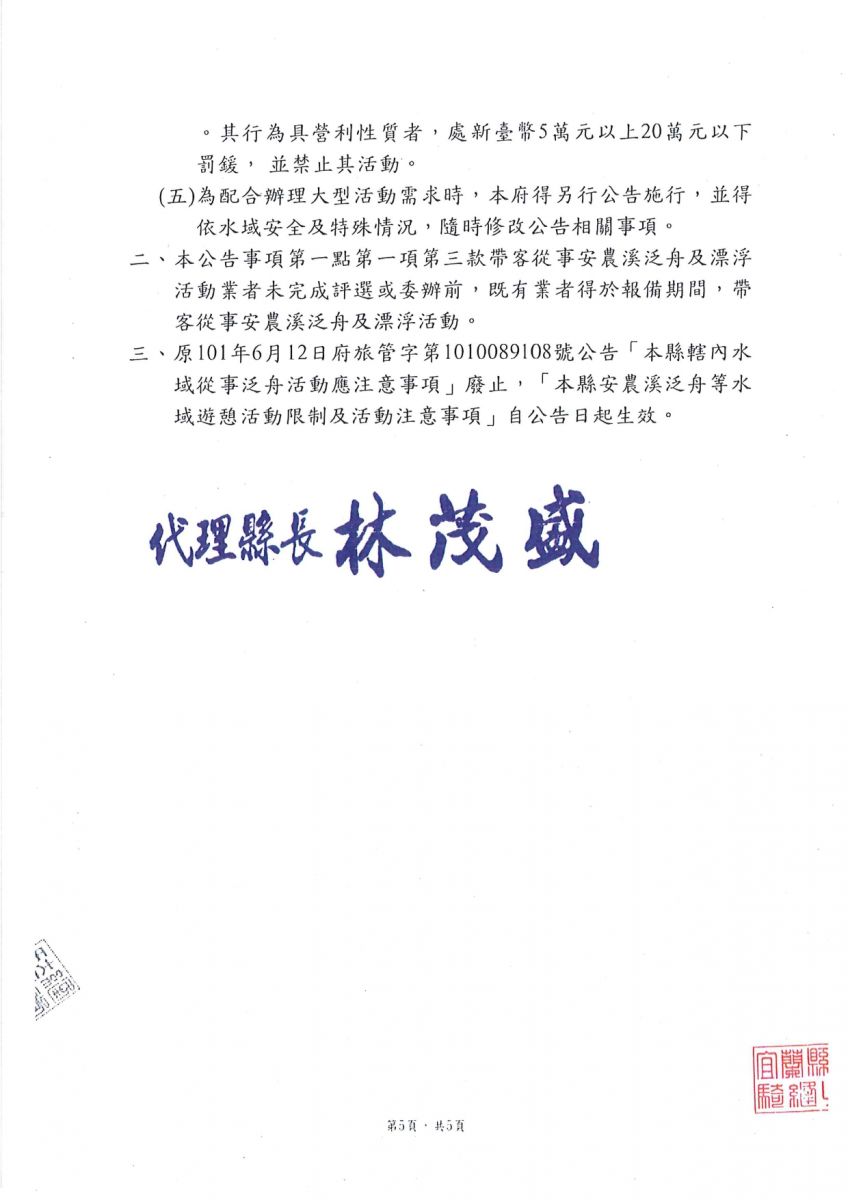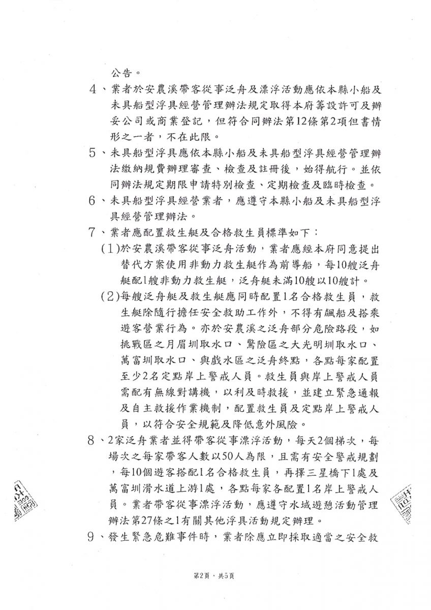 修正「安農溪帶客從事水域遊憩活動範圍圖」
