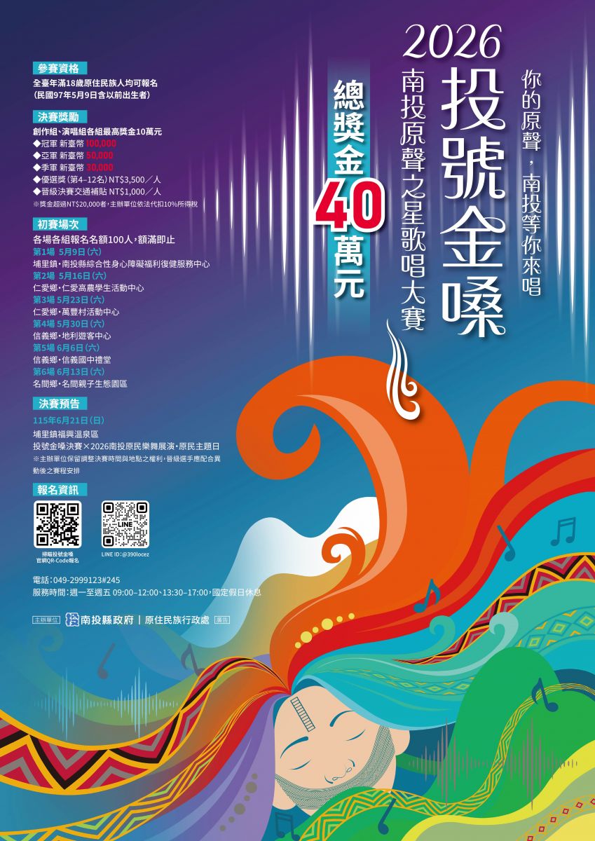 南投縣政府「投號金嗓-2026南投原聲之星歌唱大賽」