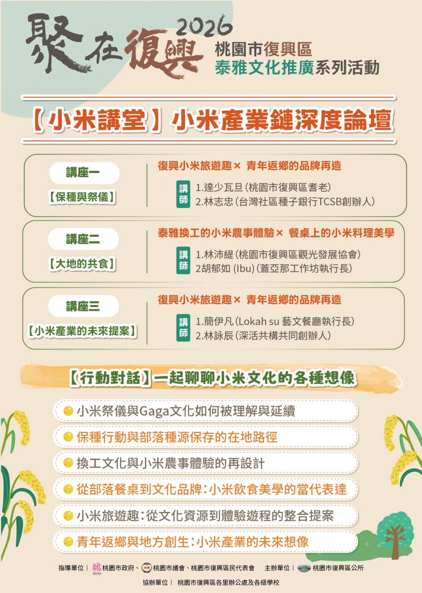 2026桃園市復興區泰雅文化推廣系列活動-達人聊小米-小米講堂